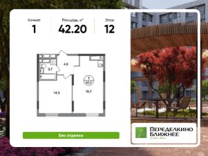 Общая площадь квартиры - 42,2 кв. м, этаж 12 из 17.