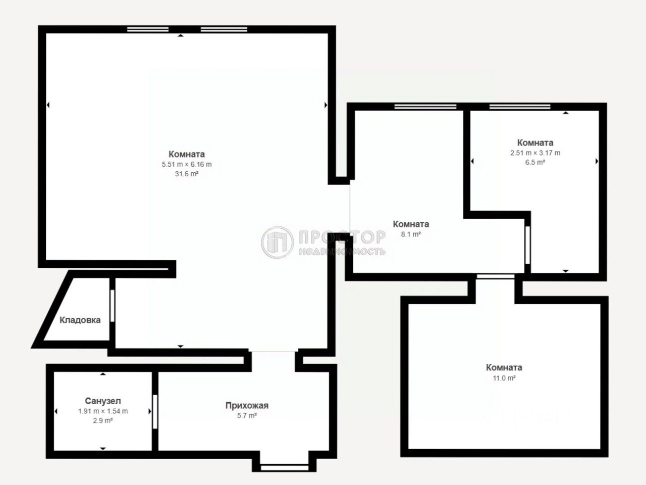 Функциональность: Пространство включает в себя 3 изолированные комнаты и отдельный санузел.