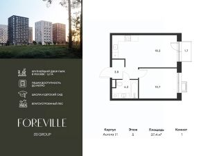 Продается уютная 1-комн. квартира площадью 37,4 кв.м на 5 этаже 17 этажного жилого комплекса бизнес-класса Foreville от 3S Group.