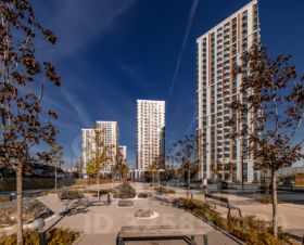 Концепция жилого квартала создана ведущими архитектурными бюро. Структуры малоэтажных кварталов дополняются высотными башнями-доминантами. Такой тип застройки позволил сформировать освещенную приватную территорию.