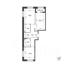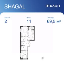 Общая площадь квартиры — 69.5 кв. м, этаж 11 из 18.