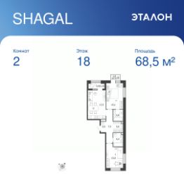 Общая площадь квартиры — 68.5 кв. м, этаж 18 из 18.
