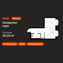 Продаётся квартира-студия площадью 28 кв.м на 15 этаже 24 этажного дома (Корпус 82.8, Секция 8) проекта ПИК Саларьево парк. Светлый просторный подъезд на уровне земли, функциональная планировка, большие окна, c отделкой.
