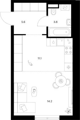 Продаётся квартира-студия площадью 34,7 кв.м на 5 этаже 29 этажного дома (Корпус 2.1, Секция 1) проекта ПИК Москворечье. Светлый просторный подъезд на уровне земли, функциональная планировка, большие окна, c отделкой.