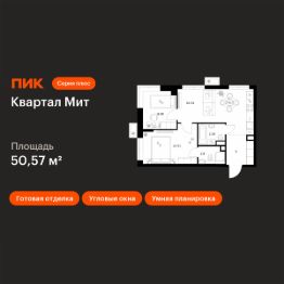 Новостройка! Продается 2-комн. кв-ра площадью 50,57 кв.м, (Корпус 3.4, Секция 4) 16 этаж 32-этажного дома в Квартал Мит от ПИК. "Квартал Мит" строится в экологически чистом районе Митино, где по соседству расположен большой лесопарк, а с двух сторон протекают реки Сходня и Журавка. Для семей с детьми здесь появится школа и два детских сада.