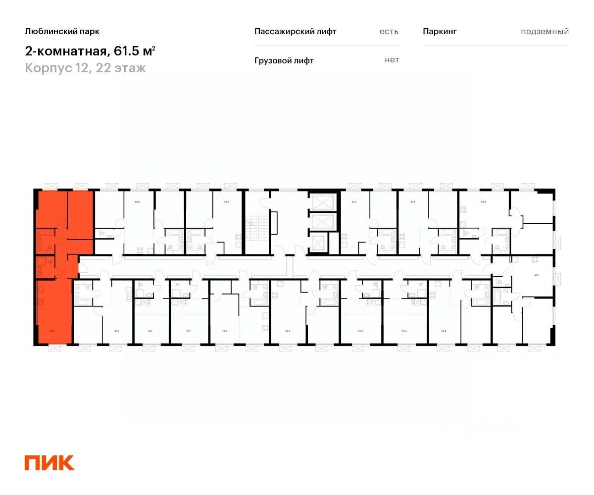 Продаётся 2-комн. квартира площадью 61,5 кв.м на 22 этаже 25 этажного дома (Корпус 12, Секция 5) проекта ПИК Люблинский парк. Светлый просторный подъезд на уровне земли, функциональная планировка, большие окна, c отделкой.