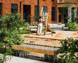 Проект состоит из корпусов с подземными паркингами, школа и детский сад. В зелёных дворах-парках будут места для отдыха, современные детские и спортивные площадки. На первых этажах откроются магазины, кафе и другие сервисы — за кофе и свежим хлебом к завтраку можно будет просто спуститься на лифте.
