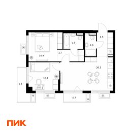 Продаётся 2-комн. квартира площадью 58,1 кв.м на 4 этаже 9 этажного дома (Корпус 1.1, Секция 3) проекта ПИК Алтуфьевское 53. Светлый просторный подъезд на уровне земли, функциональная планировка, большие окна, c отделкой.