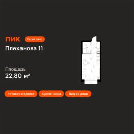 Продаётся квартира-студия площадью 22,8 кв.м на 4 этаже 24 этажного дома (Корпус 1.4, Секция 4) проекта ПИК Плеханова 11. Светлый просторный подъезд на уровне земли, функциональная планировка, большие окна, c отделкой.