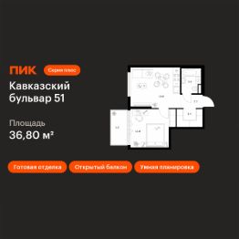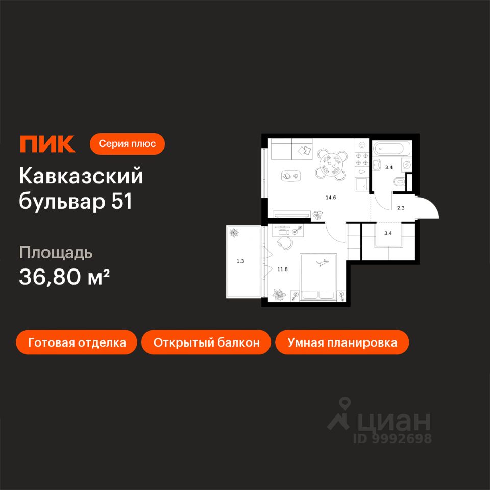 Продаётся 1-комн. квартира площадью 36,8 кв.м на 13 этаже 23 этажного дома (Корпус 3.2, Секция 2) проекта ПИК Кавказский бульвар 51. Светлый просторный подъезд на уровне земли, функциональная планировка, большие окна, c отделкой.