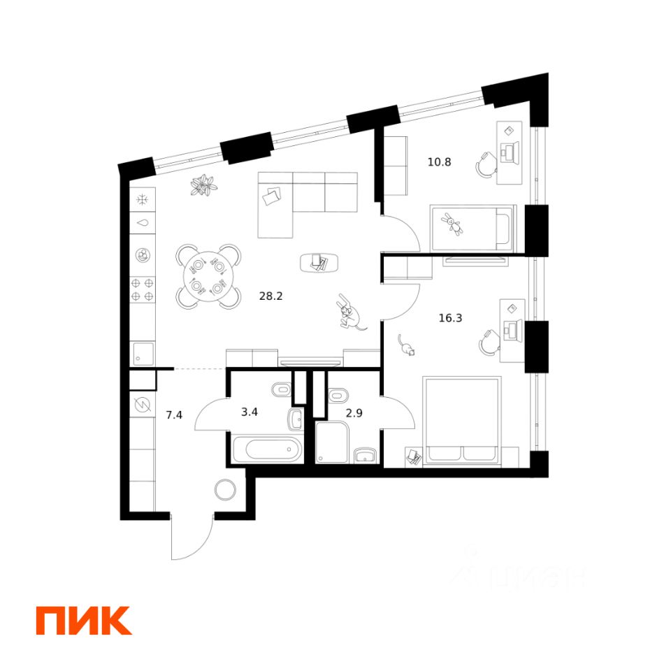 Продаётся 2-комн. квартира площадью 69 кв.м на 11 этаже 43 этажного дома (Корпус 1.1, Секция 1) проекта ПИК 2-й Иртышский. Светлый просторный подъезд на уровне земли, функциональная планировка, большие окна, c отделкой.