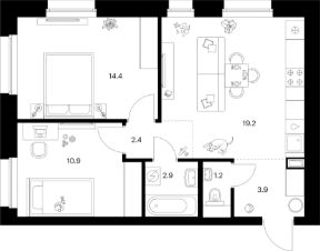Продаётся 2-комн. квартира площадью 54,9 кв.м на 30 этаже 45 этажного дома (Корпус 1.4, Секция 1) проекта ПИК Полар. Светлый просторный подъезд на уровне земли, функциональная планировка, большие окна, c отделкой.