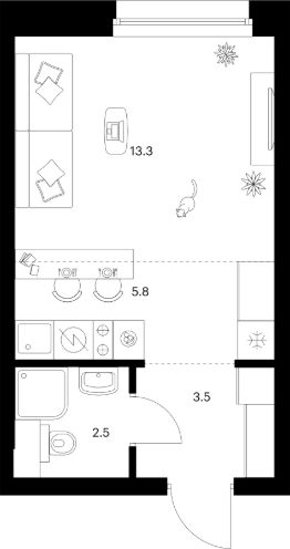 Продаётся квартира-студия площадью 25,1 кв.м на 4 этаже 45 этажного дома (Корпус 1.4, Секция 1) проекта ПИК Полар. Светлый просторный подъезд на уровне земли, функциональная планировка, большие окна, c отделкой.