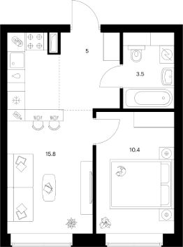 Продаётся 1-комн. квартира площадью 34,7 кв.м на 25 этаже 50 этажного дома (Корпус 1.5, Секция 2) проекта ПИК Полар. Светлый просторный подъезд на уровне земли, функциональная планировка, большие окна, предчистовая отделка.