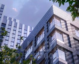 Проект состоит из зданий разной высоты и разной по характеру архитектуры. Узнаваемой доминантой квартала станет башня из стекла и металла, напоминающая водопад.