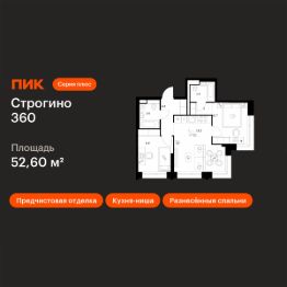 Продаётся 2-комн. квартира площадью 52,6 кв.м на 23 этаже 30 этажного дома (Корпус 1.2, Секция 1) проекта ПИК Строгино 360. Светлый просторный подъезд на уровне земли, функциональная планировка, большие окна, предчистовая отделка.