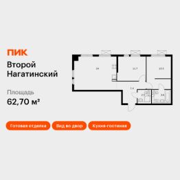 Продаётся 2-комн. квартира площадью 62,7 кв.м на 3 этаже 33 этажного дома (Корпус 7, Секция 3) проекта ПИК Второй Нагатинский. Светлый просторный подъезд на уровне земли, функциональная планировка, большие окна, c отделкой.