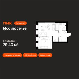 Продаётся 1-комн. квартира площадью 29,4 кв.м на 4 этаже 12 этажного дома (Корпус 2.3, Секция 3) проекта ПИК Москворечье. Светлый просторный подъезд на уровне земли, функциональная планировка, большие окна, c отделкой.