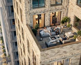 Особое внимание уделяется зоне первых этажей, где будет сформирована насыщенная городская среда. Здесь появятся общественные пространства, пешеходные галереи, коммерческие помещения и другие полезные сервисы для жителей. Точкой притяжения станет пешеходный бульвар, где будут расположены игровые площадки для детей разных возрастов и спортивные зоны.