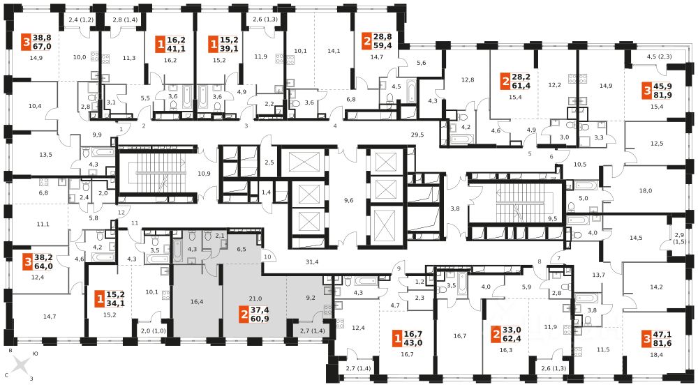 Продаётся 2-к квартира номер 116 общей площадью 60.9 кв.м. на 11-м этаже 43 этажного здания. Отделка Whitebox. Цена с учётом скидки.