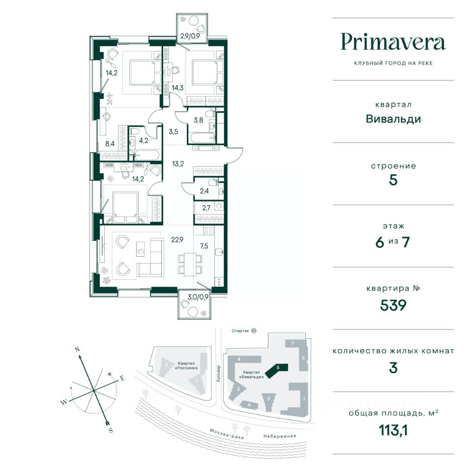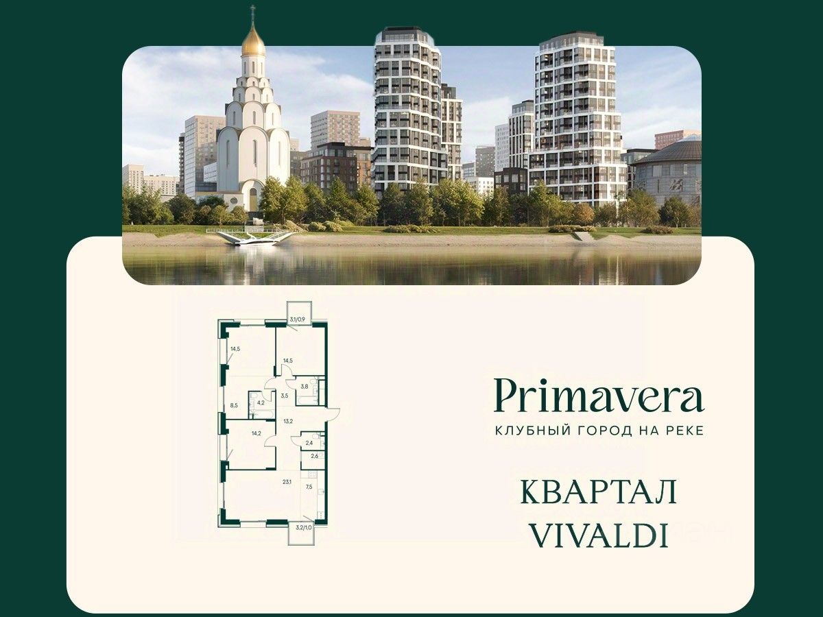 Клубный город на реке "Примавера" — это современный жилой комплекс премиум-класса, расположенный на первой береговой линии Москвы-реки в экологически чистом районе Покровское-Стрешнево. Под панорамными окнами квартир находится собственный экопарк с продуманной сетью прогулочных дорожек и современными детскими и спортивными площадками. За парком расположена набережная с собственным пляжем и зонами для отдыха. Клубный город на реке "Примавера" предлагает широкий выбор планировок для различных жизненных сценариев: от просторных однокомнатных квартир до пентхаусов и жилых помещений с террасами и патио. Выберите из 120 вариантов эргономичных планировок стандартного и евроформата. Из каждой квартиры открываются красивые виды на реку с углом обзора в 270 градусов. Дизайнерские лобби предлагают панорамный обзор на благоустроенный двор. Высокие потолки в 6 метров и качественная отделка создают атмосферу, схожую с пятизвездочными отелями. В "Примавера" есть всё необходимое для комфортной жизни в мегаполисе: • Образование для детей в шаговой доступности: 4 школы, 8 детских садов и развивающие центры с кружками и секциями. • Удобства на расстоянии приятной прогулки: супермаркеты, кафе, рестораны с верандами, салоны красоты, аптеки и многофункциональный центр для шоппинга и развлечений. • Умный дом: автоматизированное бесконтактное управление основными системами доступа и безопасности через мобильное приложение. Клубный город на реке "Примавера" выгодно сочетает комфорт городской жизни с близостью к природе. Живите в месте, где все создано для вашего удобства!