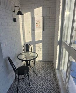 Полностью утепленная лоджия с панорамным остеклением, теплым полом и мебелью в стиле французского бистро - идеальное место для утреннего кофе.