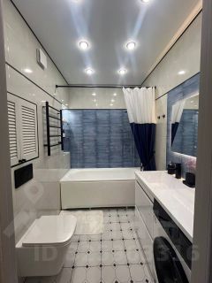 Просторная прихожая, удобная гардеробная, большая ванная комната с полноразмерной ванной, подвесным унитазом, стиральной машиной и системой теплый пол. Сине-бежевая цветовая гамма - еще один отсыл к морскому настроению.