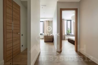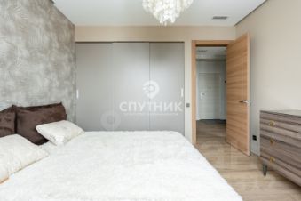 Продуманная планировка: Просторная кухня-гостиная 18 кв.м. и уютная спальня 15.34 кв.м., где разместилась кровать размера king-size (200x180 см) и встроенный шкаф-купе. Как дополнительный бонус - отдельная гардеробная для организации вещей.
