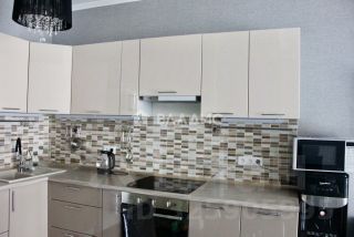 Квартира имеет функциональную планировку: просторная кухня-гостинная 32 метра с панорамным окном и теплым полом, спальня, два санузла.