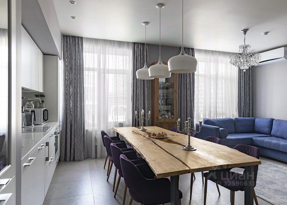 Комфорт и функциональность: центральная кухня-гостиная для семейных мероприятий, приватная спальня с видом на Сити, обособленные комнаты для детей или рабочих целей, качественный ремонт с использованием элитных материалов и современных бытовых приборов.
