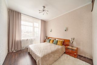 Юридически 2х комнатная, но фактически 3х комнатная, без перепланировок. 2 комнаты изолированные с окнами, третья комната проходная (без окон) - можно использовать в качестве гостевой, кабинета или игровой комнаты. Есть балкон. Окна выходят во двор и на улицу. Высокие потолки - 3,0м.