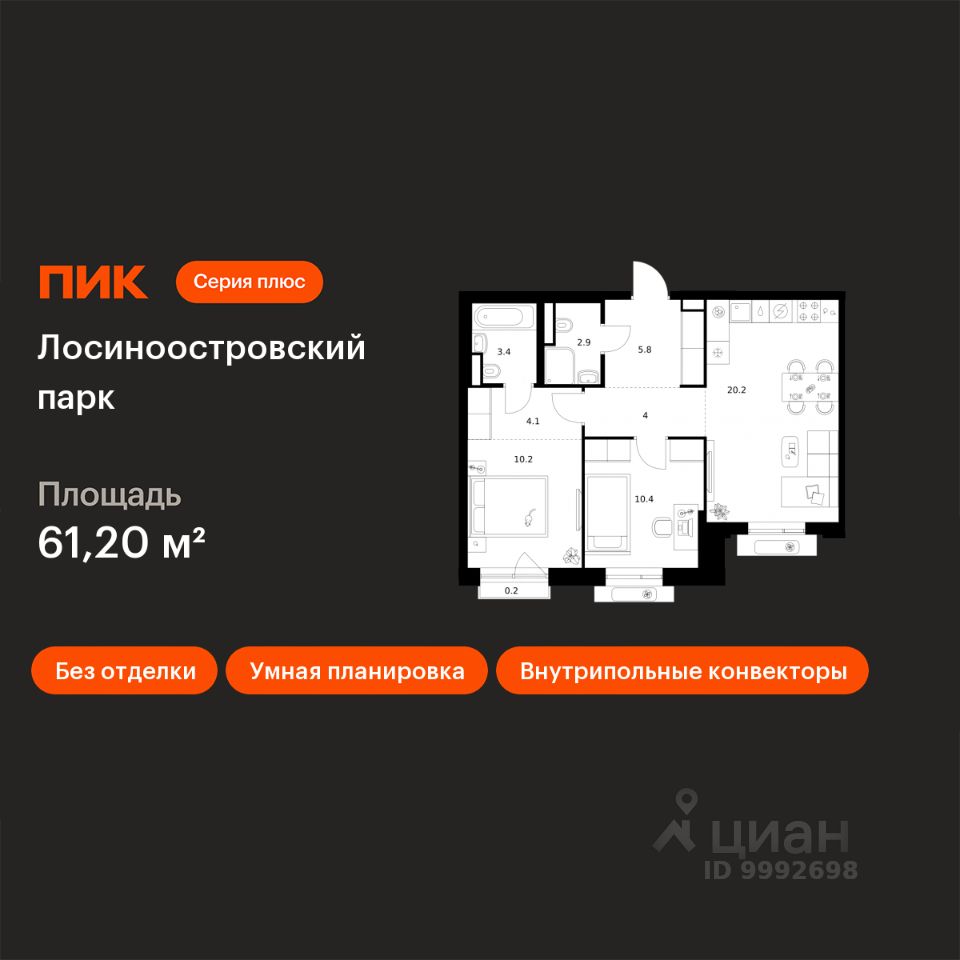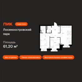 Продаётся 2-комн. квартира площадью 61,2 кв.м на 11 этаже 14 этажного дома (Корпус 2.3, Секция 1) проекта ПИК Лосиноостровский парк. Светлый просторный подъезд на уровне земли, функциональная планировка, большие окна, без отделки.
