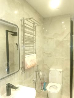 Продается стильная однокомнатная квартира с дизайнерским ремонтом в современном монолитном доме 2021 года постройки. Огороженная территория. Парковка во дворе. После ремонта в квартире никто не проживал. Общая площадь квартиры составляет 45,5 кв. м., из которой 20 кв. м. выделено под жилую зону, а кухня занимает 18 кв. м. Квартира расположена на 8 этаже 24-этажного дома, а потолки высотой 2,8 метра создают ощущение простора.