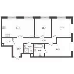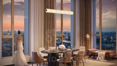 Квартира в черновой отделке на 19 этаже , общая площадь 87.4 кв.м. окна выходят на Юго-Запад. Ключевым преимуществом является уникальный инженерный план этажа, обеспечивающий высоту потолков 3.3-3.4 метра, что на 15-25 см выше стандартной, и увеличенные окна с низкими подоконниками 40 см, открывающие панорамный вид на Москву-реку и город с высоты около 70 метров