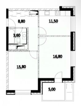 Общая площадь квартиры по ЕГРН без учета лоджии 52.8 кв.м., квадратные комнаты 16.8 кв.м. и 15.8 кв.м., санузел совмещен.