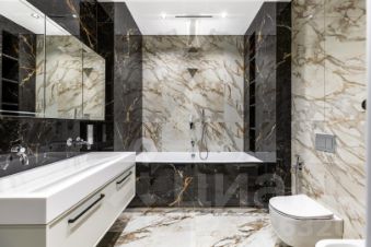 - Высококачественные отделочные материалы: пол выполнен из дорогой инженерной доски с дополнительным слоем фанеры, плитка - премиальный керамогранит пяти видов, кухонный гарнитур с использованием элитного материала Sapienstone dark marquina.