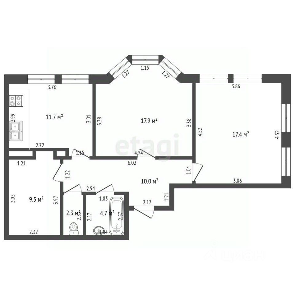 Продается просторная евро-3 квартира свободной планировки площадью 73,5 м² на 10 этаже нового дома, сданного в 2020 году.