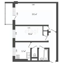 Двухкомнатная квартира 45.1 кв. м .