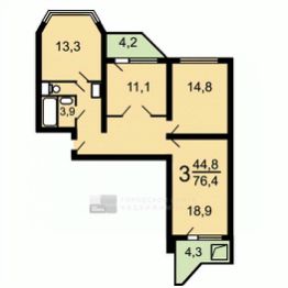 Арт. 128695195 Продается просторная изолированная трехкомнатная квартира 76.2 кв.м. на 3-м этаже 17-ти этажного дома. Расположение комнат в квартире по типу "распашонки", окна выходят на улицу и во двор. Застекленная утепленная лоджия 4.3 кв.м и балкон 4.2 кв.м. Три спальни- 18.9 кв.м, 14.8 кв.м, 11.1 кв.м. Просторная кухня 13,1 кв.м с эркером. Широкий коридор со встроенными шкафами.