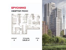 Квартира с кухней-гостиной и четырьмя спальнями в квартале "МОНС". Особенности планировки: без отделки, разнесённые спальни, терраса на крыше.