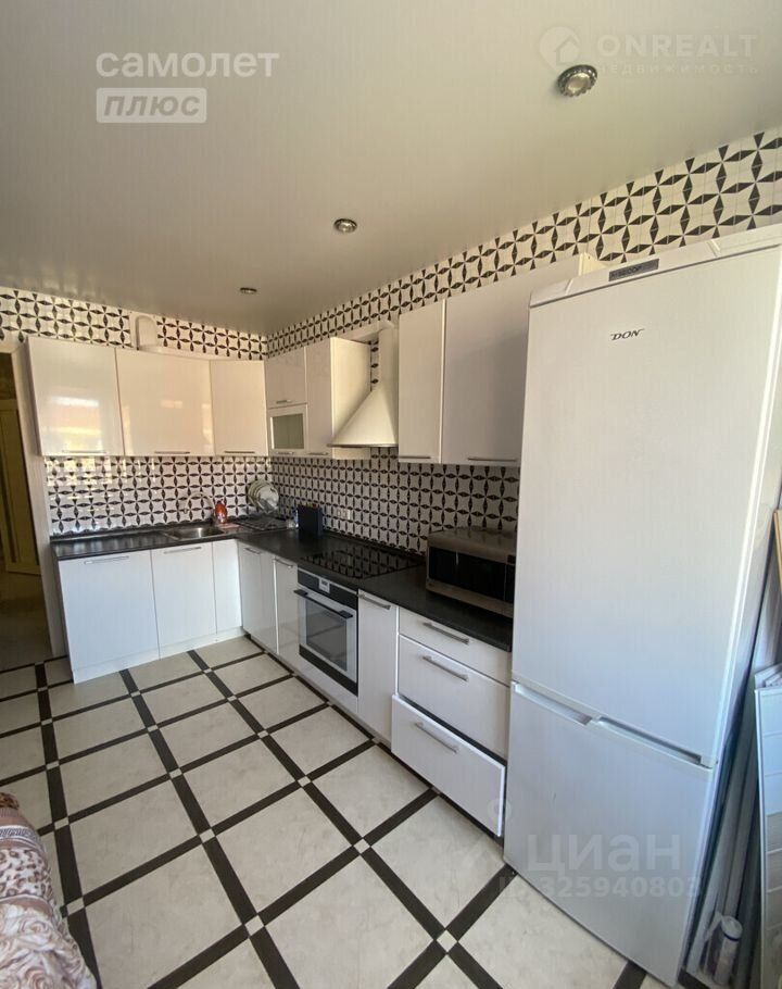 В квартире выполнен современный ремонт в светлых тонах, имеется встроенный кухонный гарнитур с бытовой техникой.