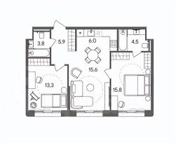 Функциональная 3-Евро планировка для максимально комфортной семейной жизни, включает в себя просторную кухню-гостиную, два санузла, уютную спальню и мастер-блок. Большие окна-красивые виды.