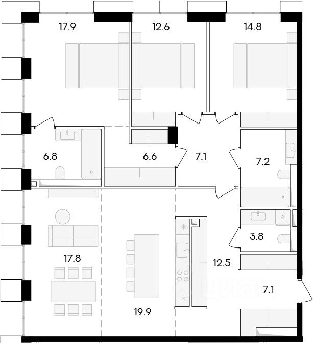 Предлагается 4 к-кв общей площадью 134.1 в ЖК "Life Time".