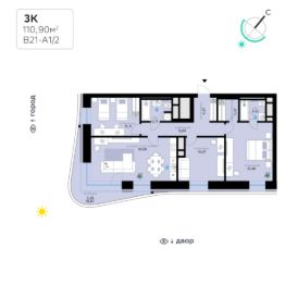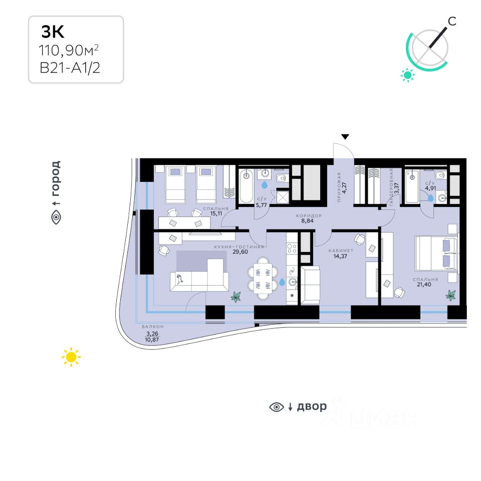 В продаже — трехкомнатная квартира с чистовой отделкой, общей площадью 110,9 кв. м. Квартира расположена на втором этаже одинадцатиэтажной секции корпуса класса Адвансд в новом районе СберСити, который строит Сбер. Дом находится на второй береговой линии Москвы-реки.