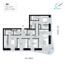 В продаже — четырехкомнатная квартира с чистовой отделкой, общей площадью 155,31 кв. м. Квартира расположена на втором этаже тринадцатиэтажной секции корпуса класса Адвансд в новом районе СберСити, который строит Сбер. Дом находится на второй береговой линии Москвы-реки.
