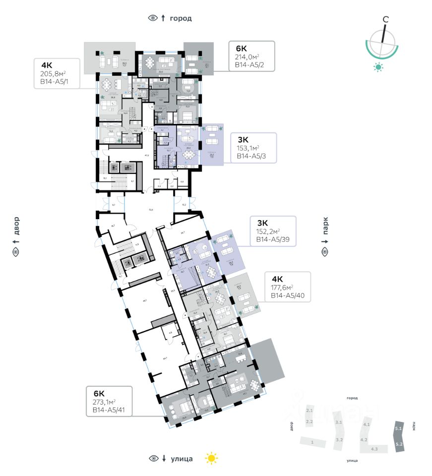 Архитектуру корпусов квартала разработало итальянское бюро. В облике отражена природная палитра: золотисто-бронзовый фасад корпуса Адвансд, выполненный из объёмных металлических элементов со сложным профилем, стал архитектурной доминантой квартала. Из окон открываются панорамные виды на реку и парк. Всего три минуты пешком — и вы на набережной. В14 примыкает к главному парку СберСити. В квартале — зелёные дворы без машин с крупномерными растениями, кустарниками, многолетними цветами, детскими площадками и тихими зонами отдыха.