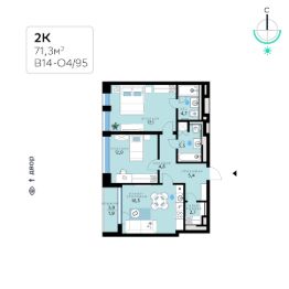 В продаже — двухкомнатная квартира, общей площадью 71,3 кв. м. Квартира расположена на восьмом этаже десятиэтажного корпуса Оптимум в квартале В14 нового района СберСити, который строит Сбер.