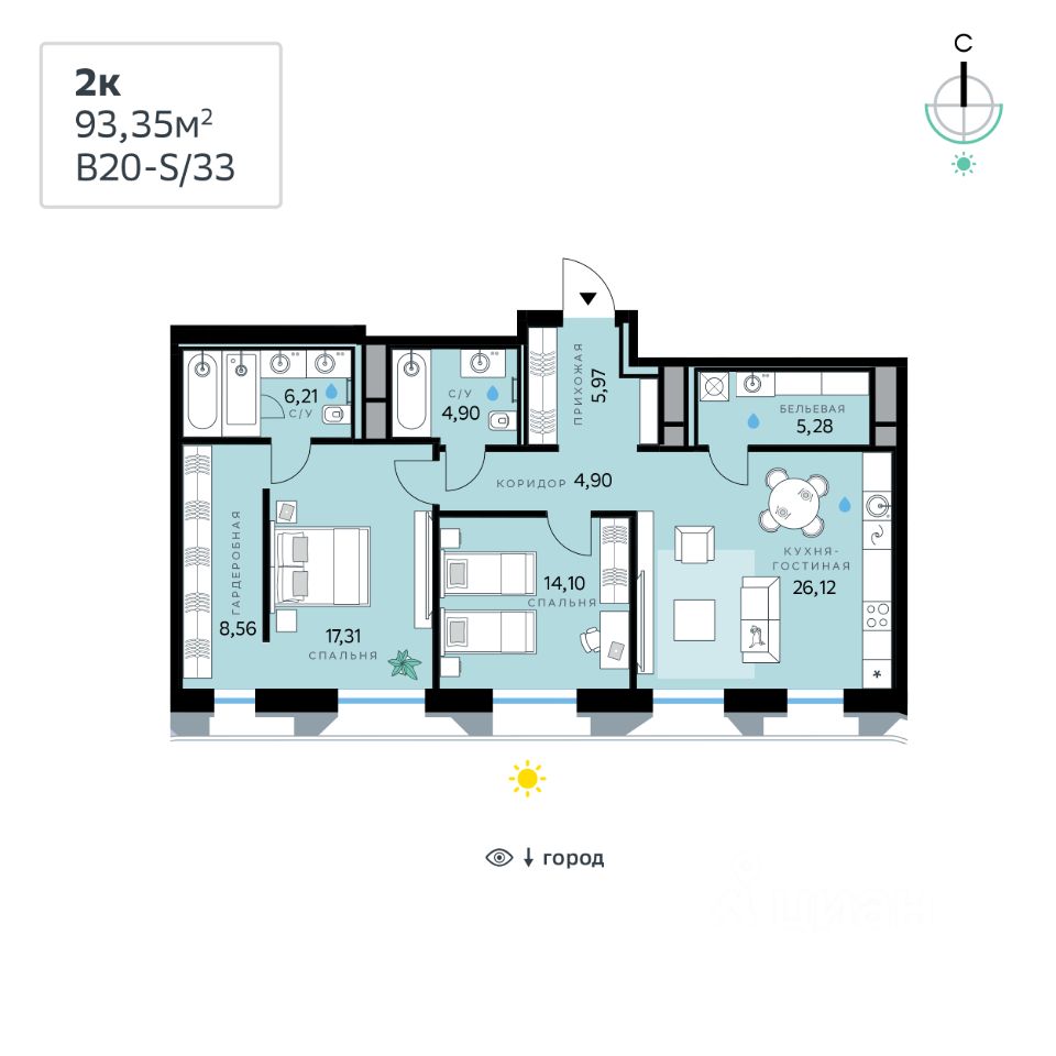 В продаже — двухкомнатная квартира с чистовой отделкой, общей площадью 93,9 кв. м. Квартира расположена на втором этаже семиэтажной секции клубного дома класса Суперб в новом районе СберСити, который строит Сбер. Дом находится на первой береговой линии Москвы-реки.