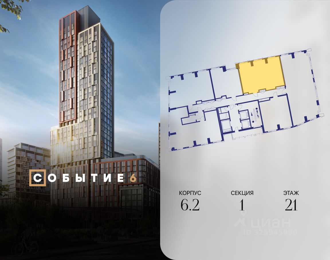 Продаётся 2-комнатная квартира от застройщика: общая площадь 71.40 м², жилая 31.00 м², кухня 23.80 м², 21-й этаж, жилой квартал "Событие-6", корпус 2 (секция 1) Срок сдачи: 1 квартал 2029 года.