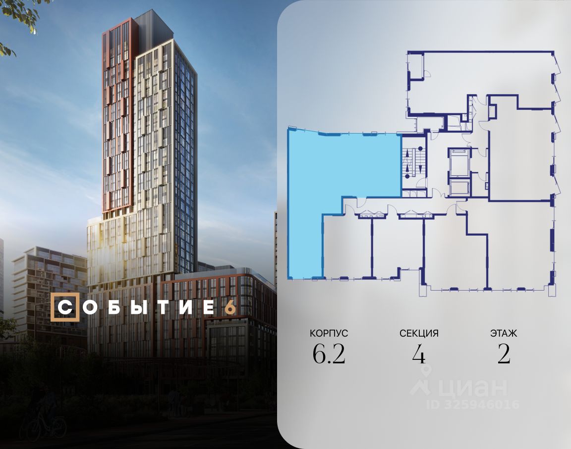 Продаётся 3-комнатная квартира от застройщика: общая площадь 109.70 м², жилая 42.40 м², кухня 23.80 м², 2-й этаж, жилой квартал "Событие-6", корпус 2 (секция 4) Срок сдачи: 1 квартал 2029 года.